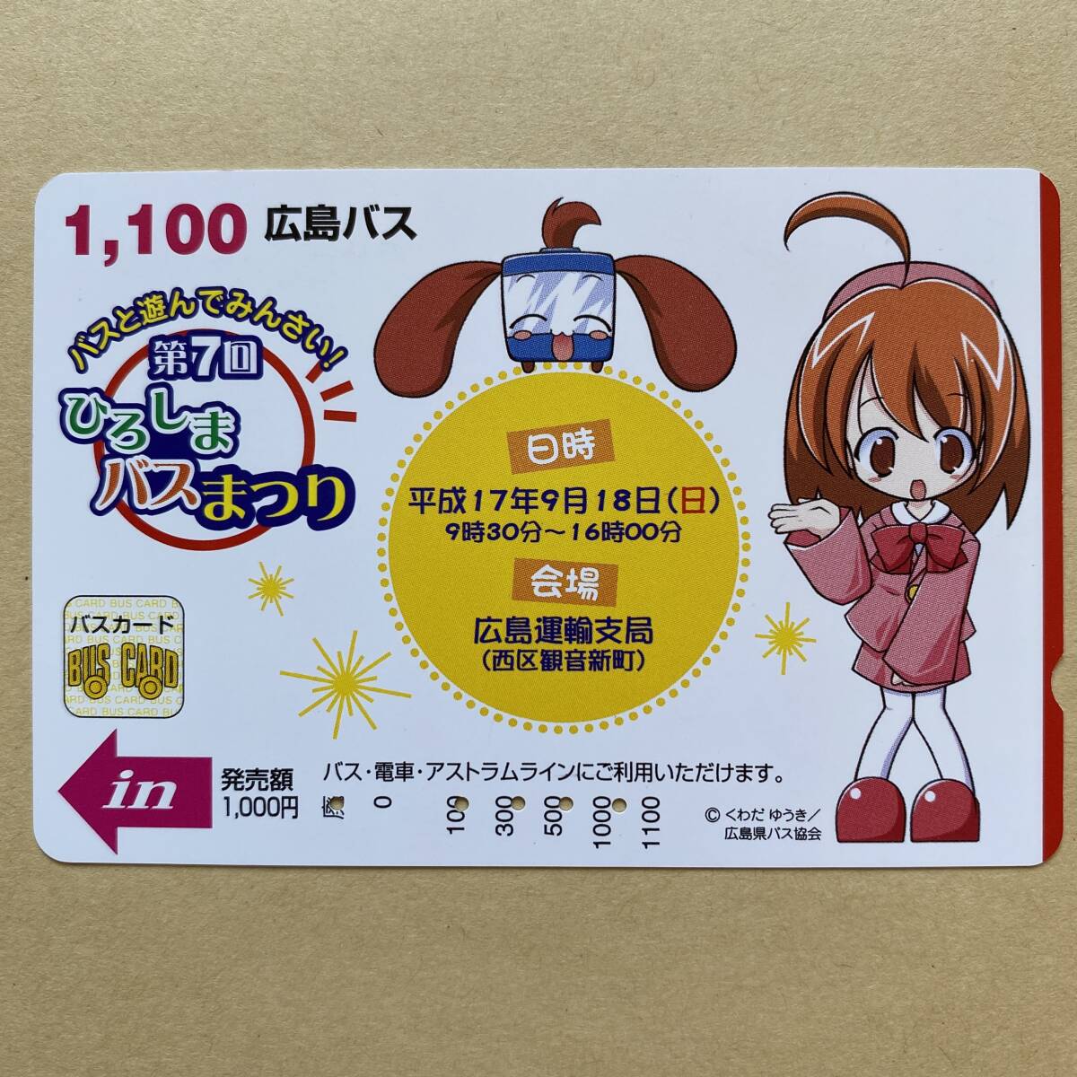 - 【使用済】 バスカード 広島バス 第7回ひろしまバスまつり くわだゆうき イラスト