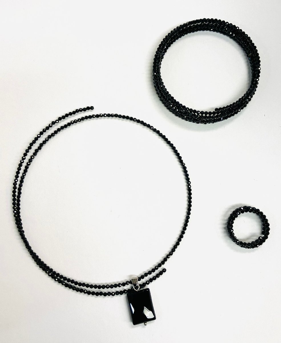 - ブラックスピネル オメガネックレス リング ブレスレット 3点セット qoj.YZD01