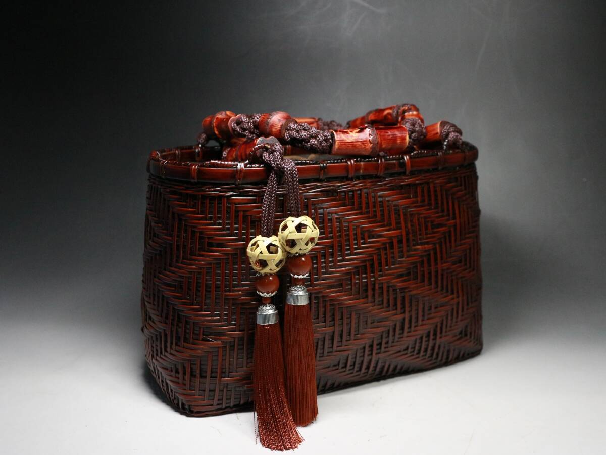 - ■煎茶道具■竹編・煎茶籠・網代編・竹細工・竹節持手・編込・野点・竹篭・茶道具・F1050U