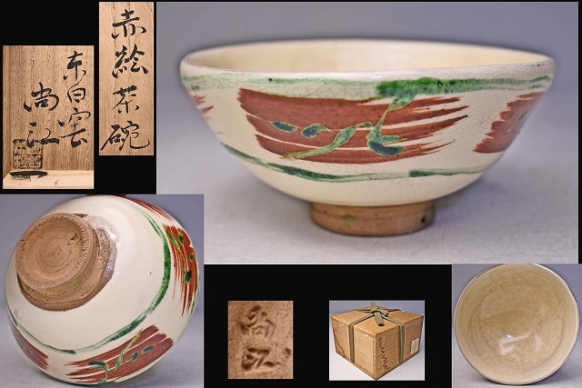 - 出口尚江 ★ 赤絵茶碗 ★ 共箱 ★ 上作 ★ 琉球赤絵風 ★ 大本教 出口王仁三郎 の 娘 ★ 色絵 ★ 人間国宝 金重陶陽 石黒宗麿 薫陶受ける