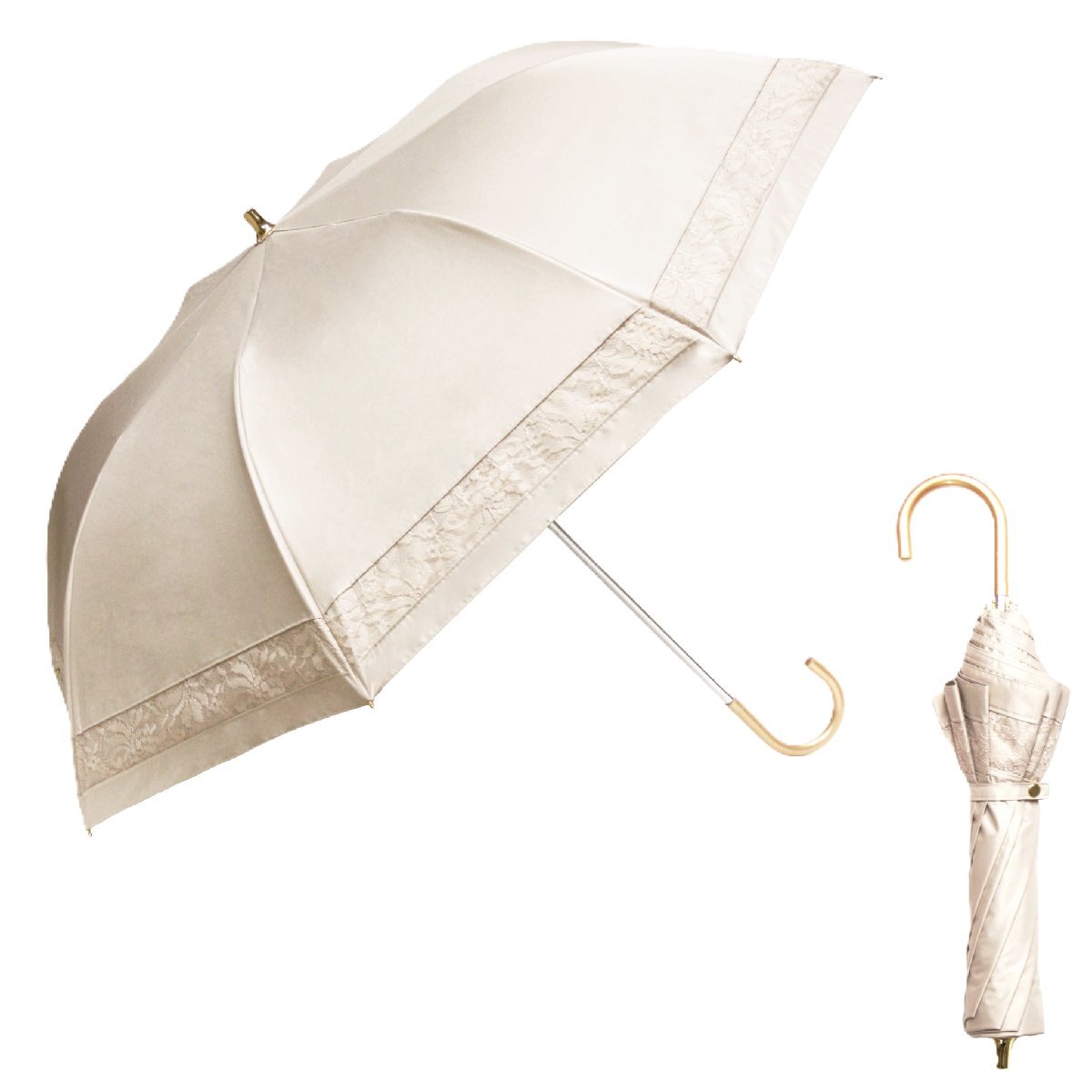 - 日焼け止め効果世界基準最大値 UPF50+ 遮熱 遮光 紫外線カット 折りたたみ傘 親骨50cm ベージュ 防水加工 晴雨兼用 サッとたためる