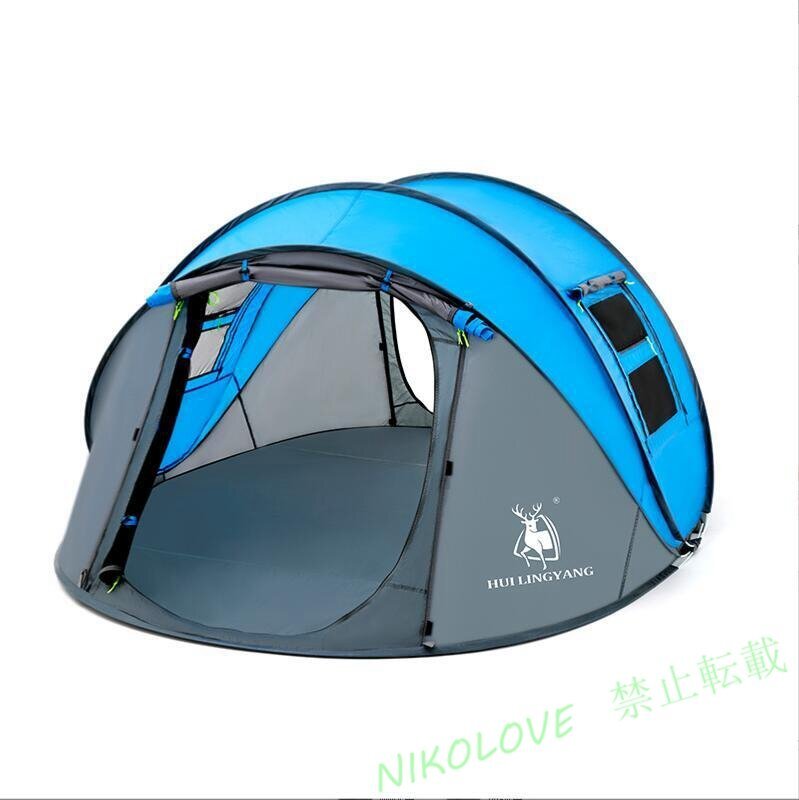 > 新品テントワンタッチテントキャンプ設営簡単ツーリングテントカンプライト防風防水軽量釣り登山 3-4人用 ブルー LD826