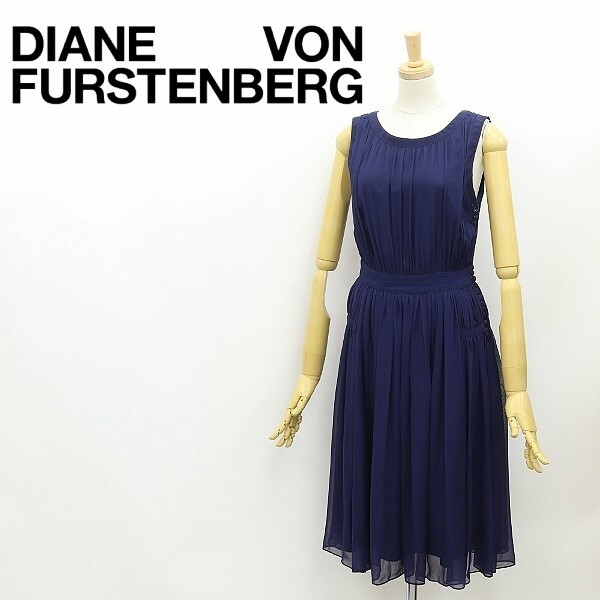 > ◆DIANE von FURSTENBERG ダイアンフォンファステンバーグ DVF LETTY シルク100% バックシャン ギャザー フレア ノースリーブワンピース 0