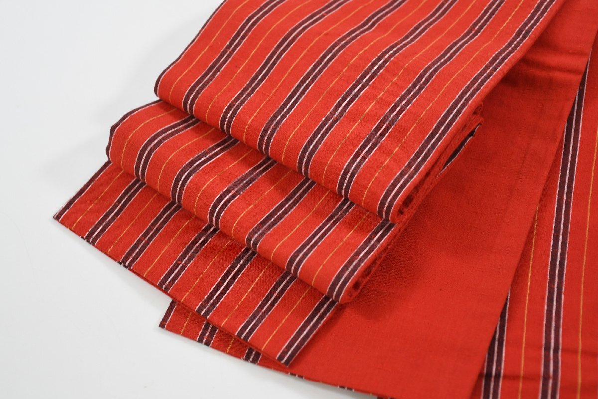 - 半幅帯 縞模様 縞著 赤 帯丈324cm ★着物 ha-149 桜庭呉服店