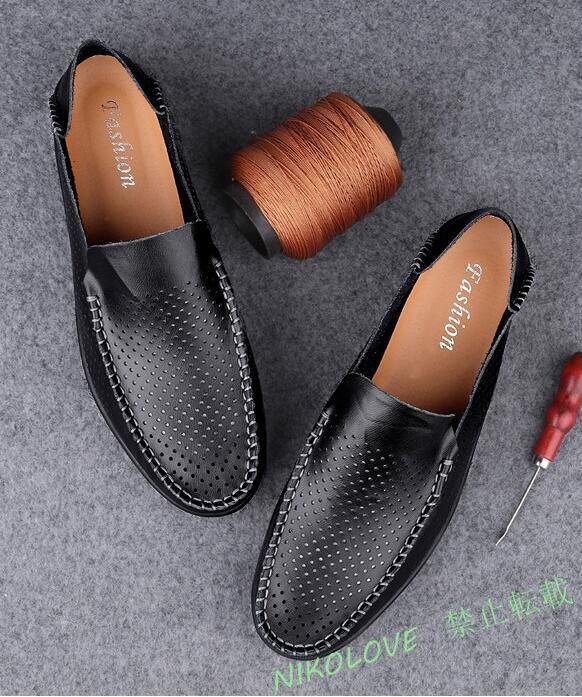 > 新品本革 牛革 通気性 モカシン ドライビングシューズ 男性 通勤 コンフォート カジュアル モカシン 黒色 25.5cm LC211