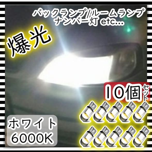 - 12V LEDバルブ 10個セット ポジションランプ ナンバー灯 ルームランプ バックランプ パネル T10 ホワイト 白 6000K ウェッジ球 汎用