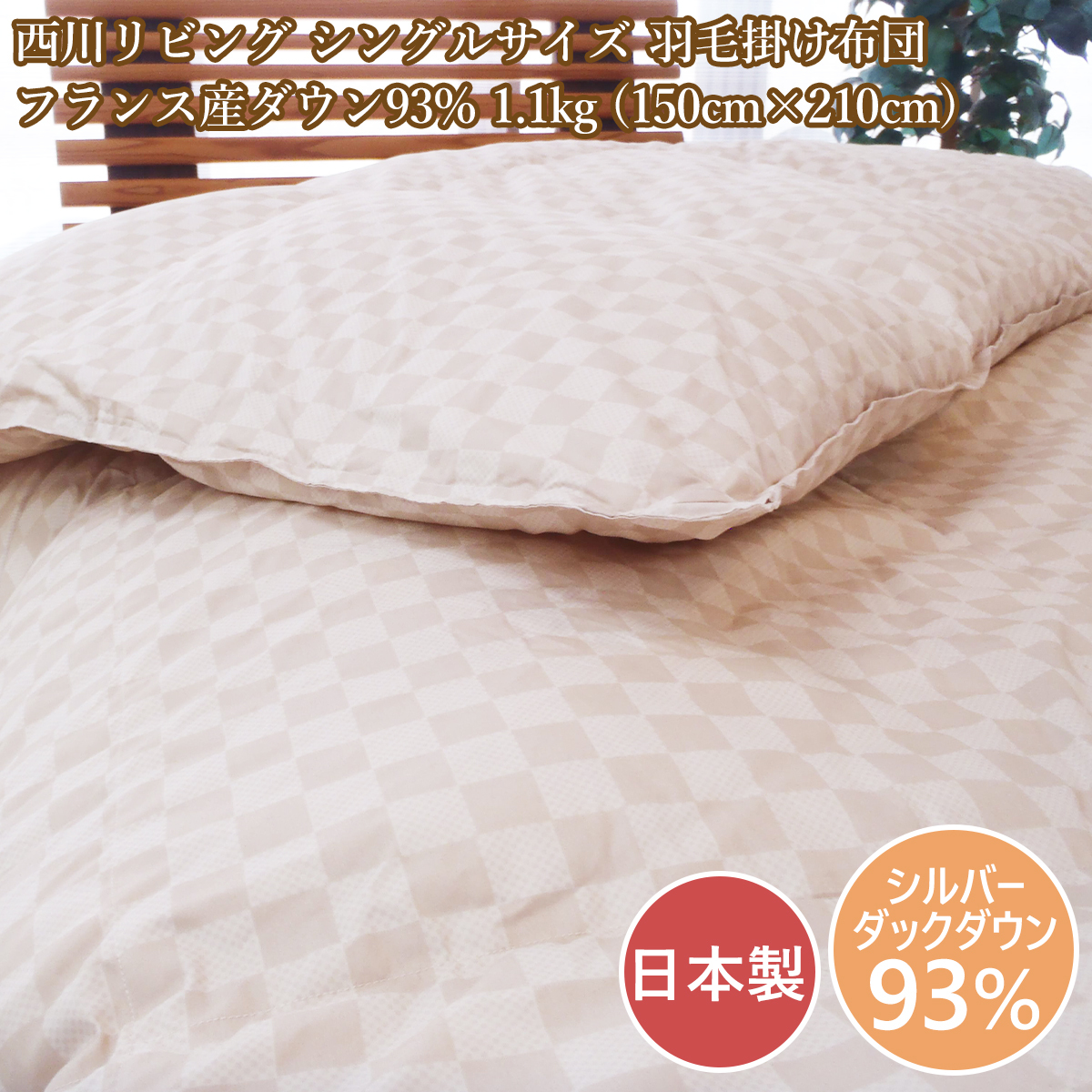 > 西川 羽毛布団 シングル フランス産ダックダウン93% 1.1kg 日本製 羽毛掛け布団 シングルロング 西川リビング