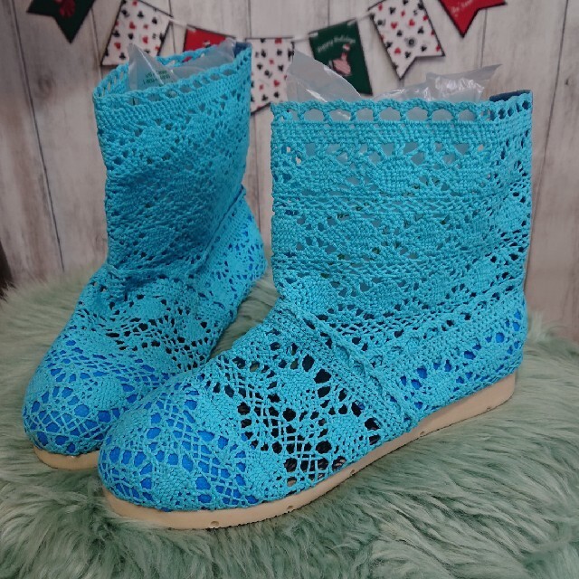 - 難有 丈不揃い 37 サマーブーツ 新品 ライトブルー フラット レース ショートブーツ 773A 夏ブーツ レディース 靴 ブーツ