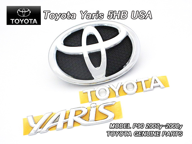 - ヴィッツP90前期/TOYOTA/トヨタYARISハッチバック純正USエンブレム-前後3点セット(07-08y)/USDM北米仕様ビッツ5HBヤリスUSAシンボルTマーク