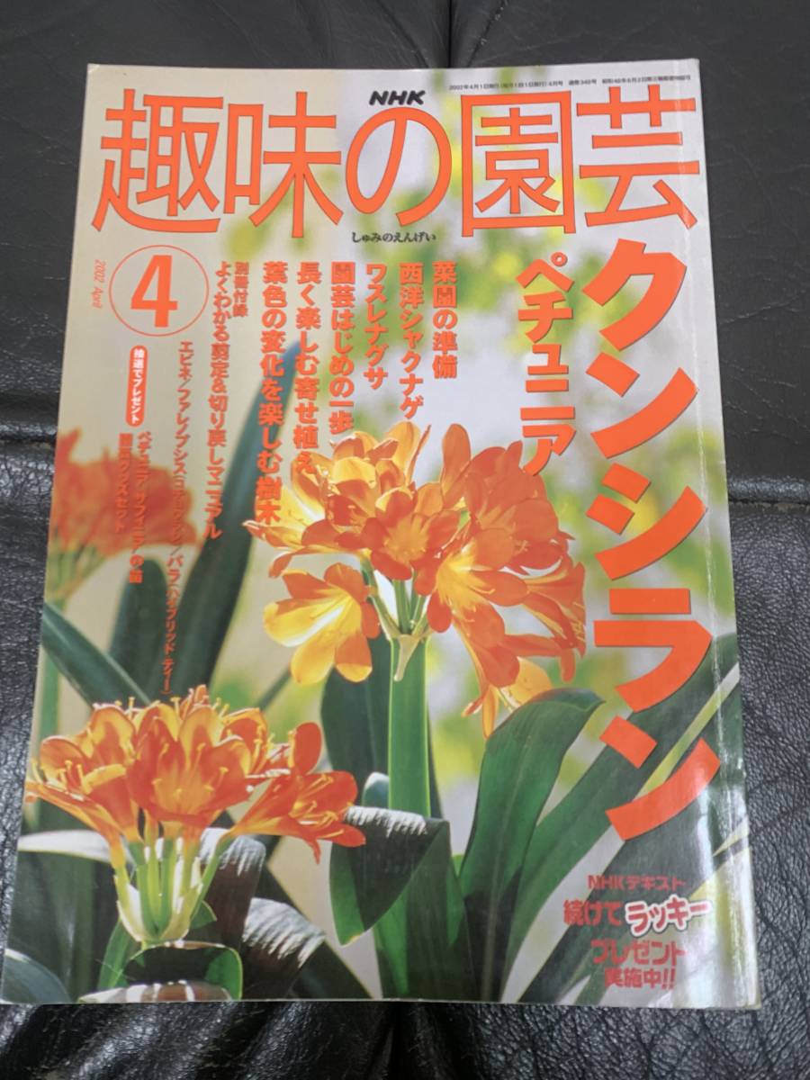 - ★2002年★NHK 「趣味の園芸」4月 クンシラン/ペチュニア 寄せ植え 菜園の準備 西洋シャクナゲ ワスレナグサ (奥ベッド下保管)