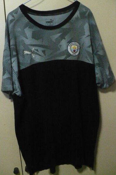 - PUMA【プーマジャパン(株)】製2019-20マンチェスター・C(シティ)カジュアル半袖Tシャツ US-XLサイズ 黒×水色 758100