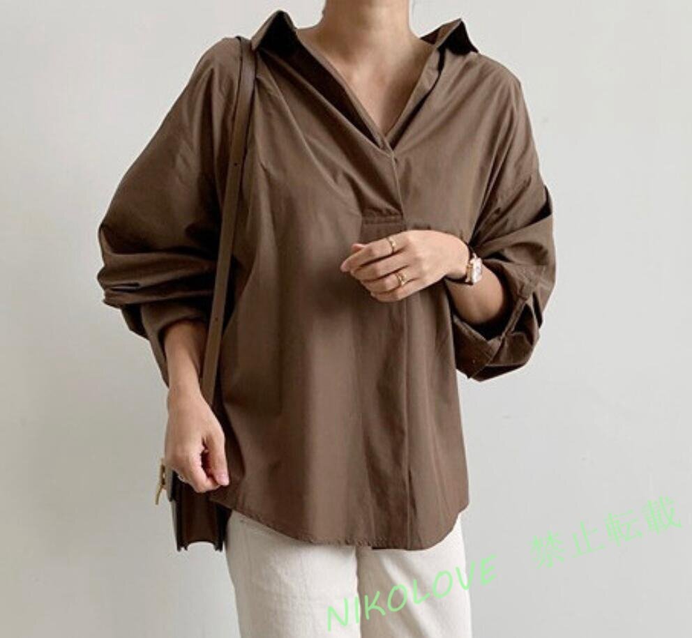 > 新品カジュアル シャツ ドルマン 着痩せ ゆったり 大人 30代 40代 レディース 通勤 長袖 オフィス チュニック コーヒー M LH790