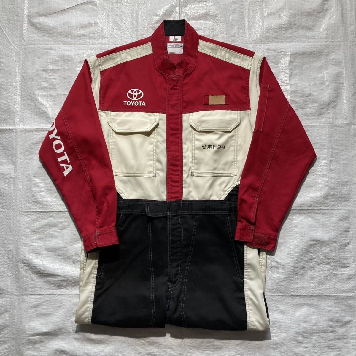 - 2 TOYOTA TECNO トヨタテクノ 熊本 メカニックスーツ つなぎ オールインワン 長袖 L