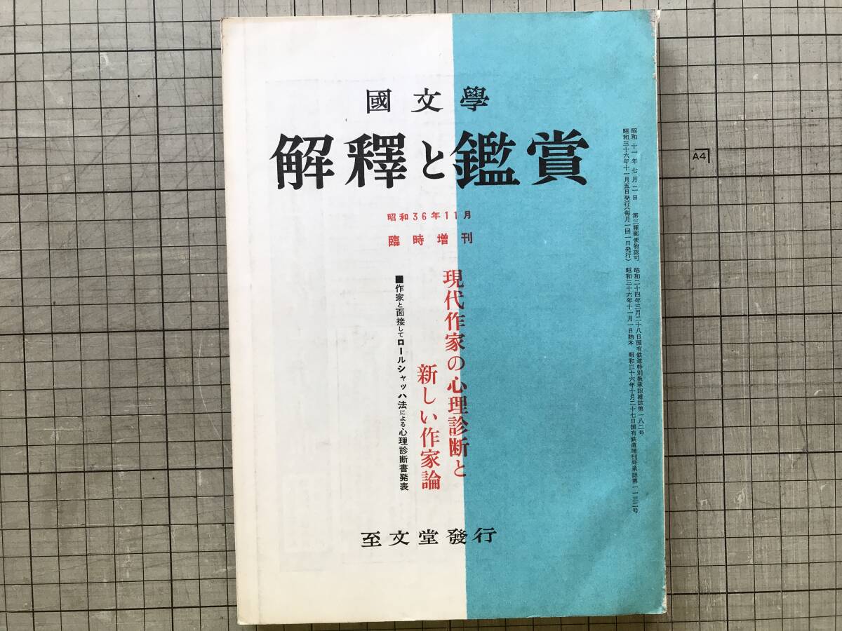> 『国文学 解釈と鑑賞 第313号 第26巻第14号 現代作家の心理判断と新しい作家論』三島由紀夫・金子光晴・稲垣足穂 他 至文堂 1961年刊 10096