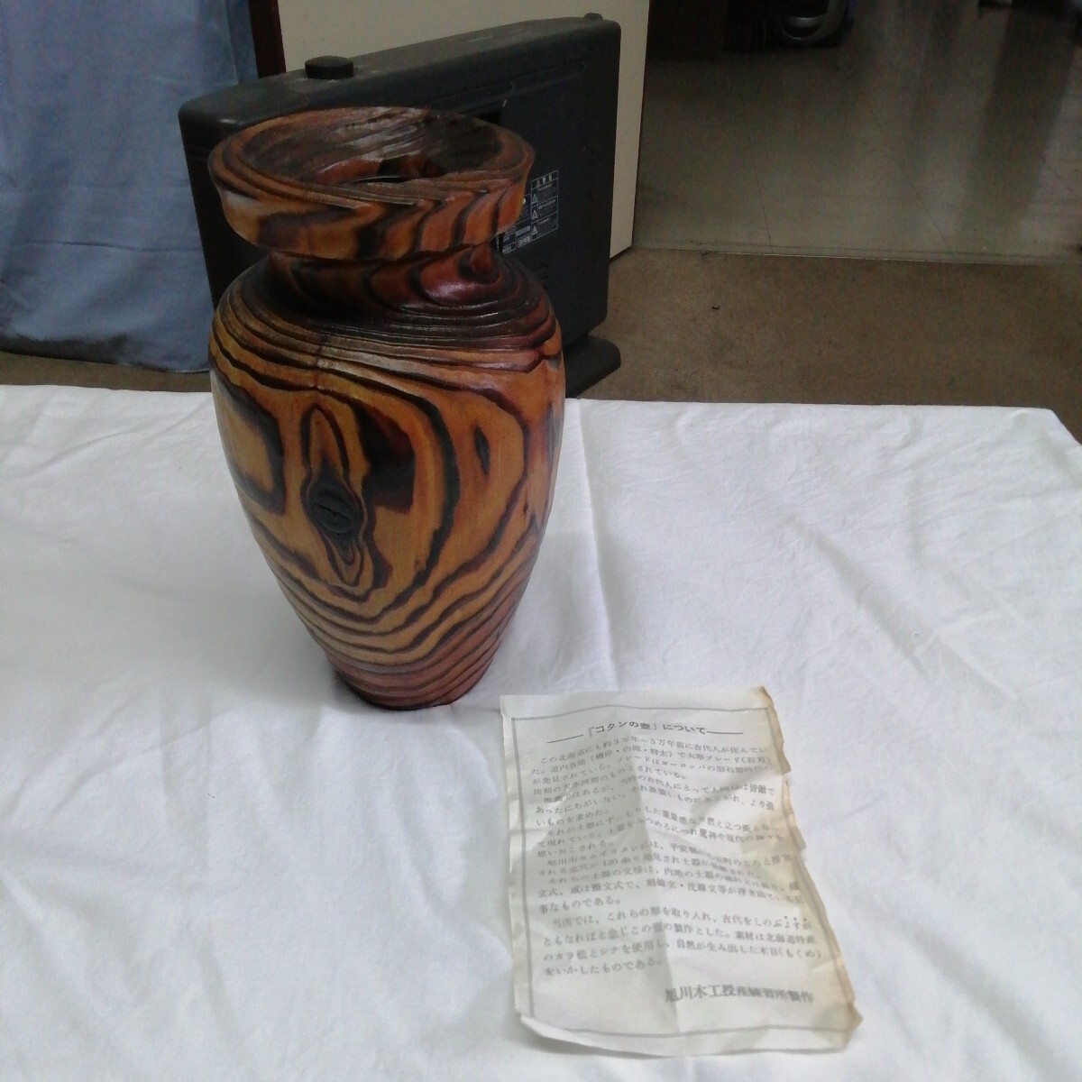 - コタンの壷 花瓶 木目 天然 木製 無垢 焼 カラ松 シナ (約高21cm)