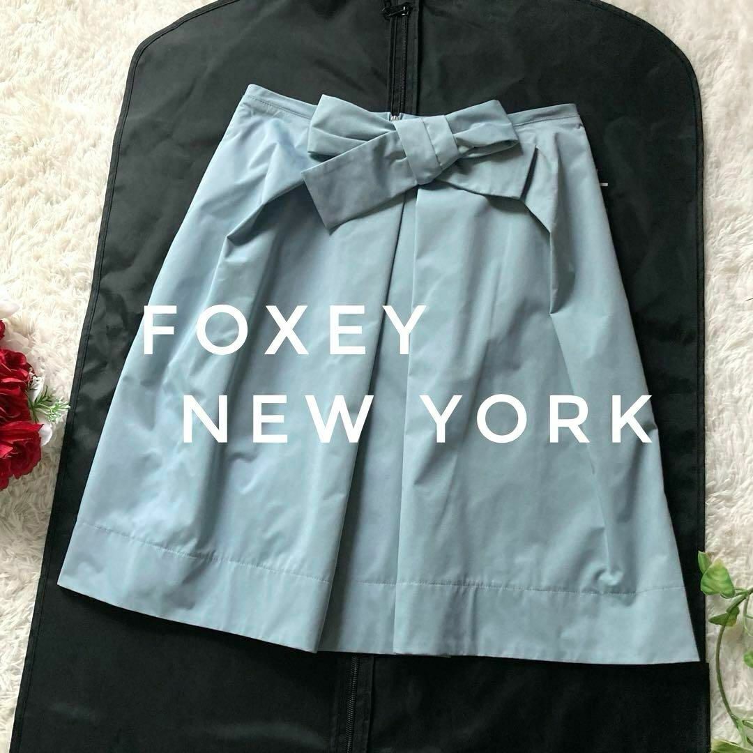 > フォクシーニューヨーク リボンフレアスカート サックスブルー 水色 日本製 40サイズ FOXEY NEW YORK