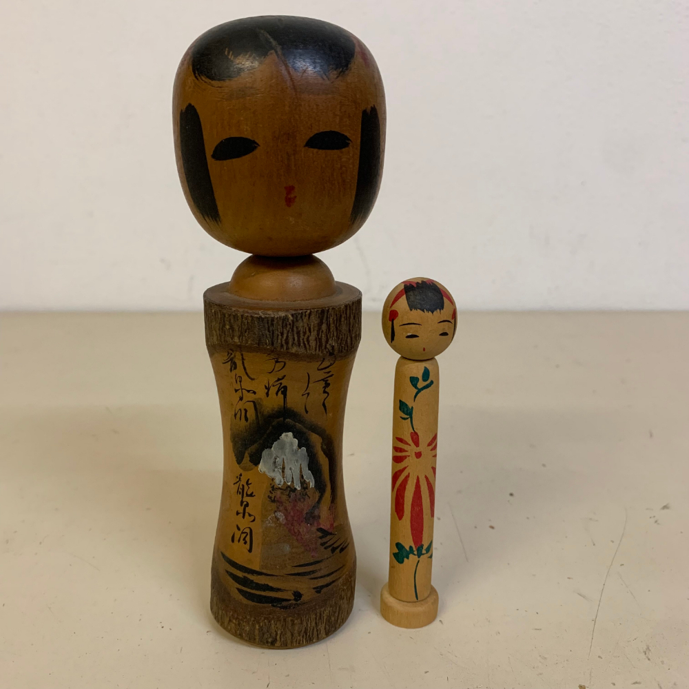 - 2体セット こけし 風景模様 お土産 民芸品 伝統工芸 日本製 木の人形 Japanese wooden Kokeshi dolldoll【2050