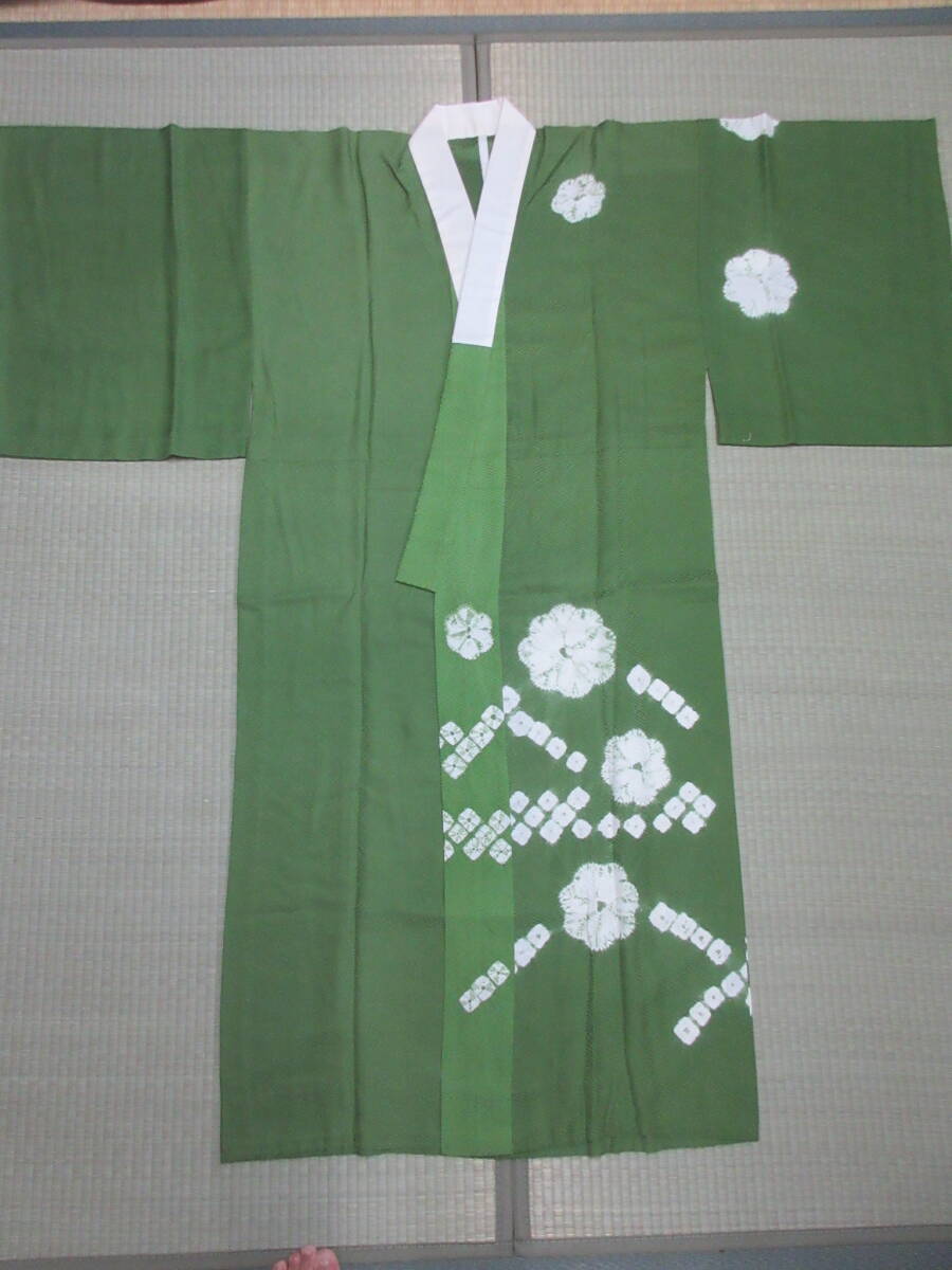 - ☆☆箪笥の整理 殿方用 長襦袢 絞入り絵羽襦袢 グリー地★★