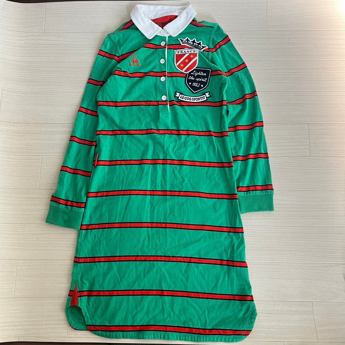 - le coq sportif ルコックスポルティフ ゴルフ ポロシャツ 長袖 ロング丈 ワンピース ボーダー柄 グリーン サイズS