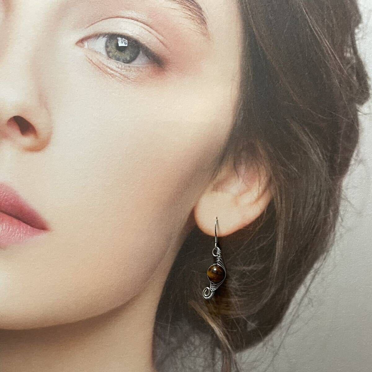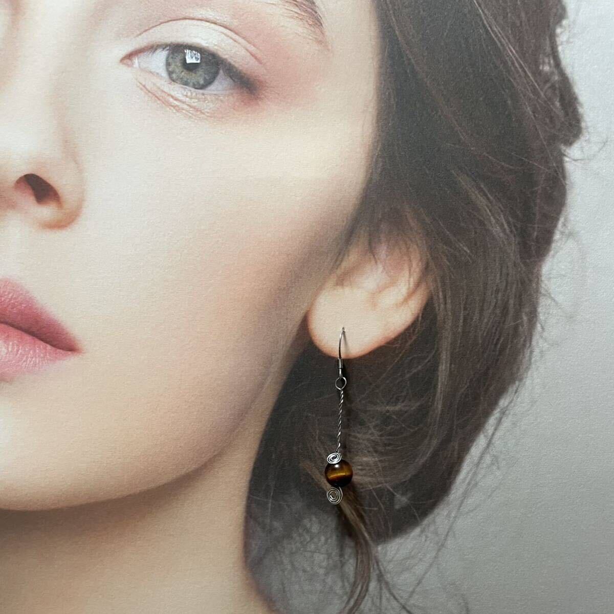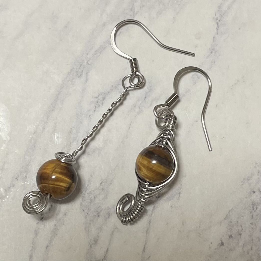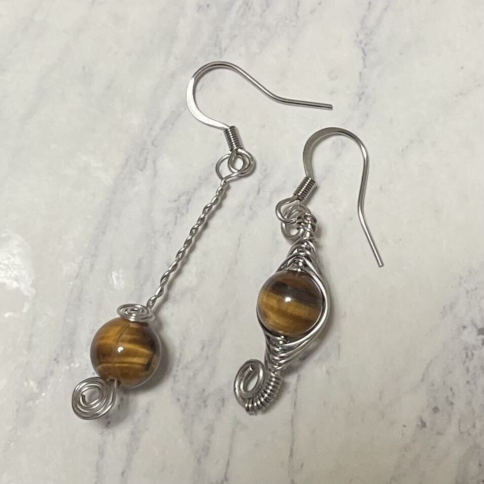 - A17. 天然石 ピアス タイガーアイ ハンドメイド サージカルステンレス アレルギーフリー ニッケルフリー アシンメトリー