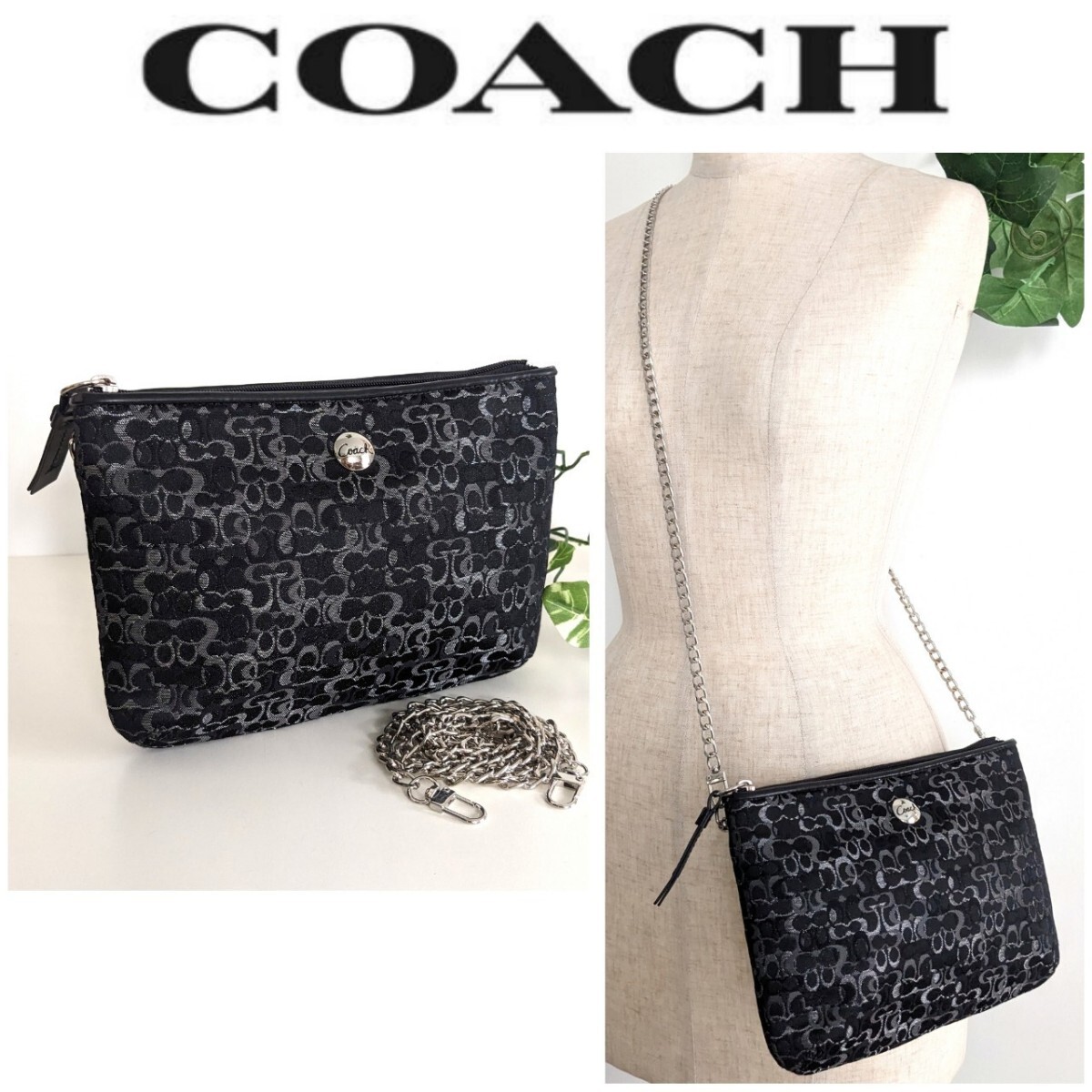 - 極美品 コーチ 2way チェーン 斜め掛け ポシェット クラッチバッグ サコッシュ ポーチ ショルダーバッグ 黒 シルバー レディース メンズ