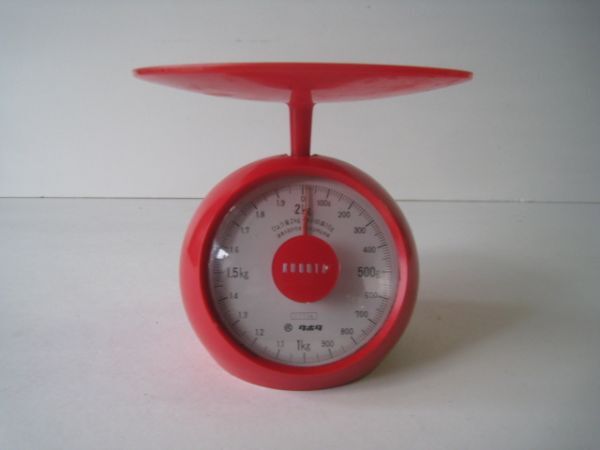 > レトロ 赤いかわいいはかり KUBOTA クボタ キッチンスケール はかり 2Kg 天板サイズ:外径17.5㎝/23N7.4-31