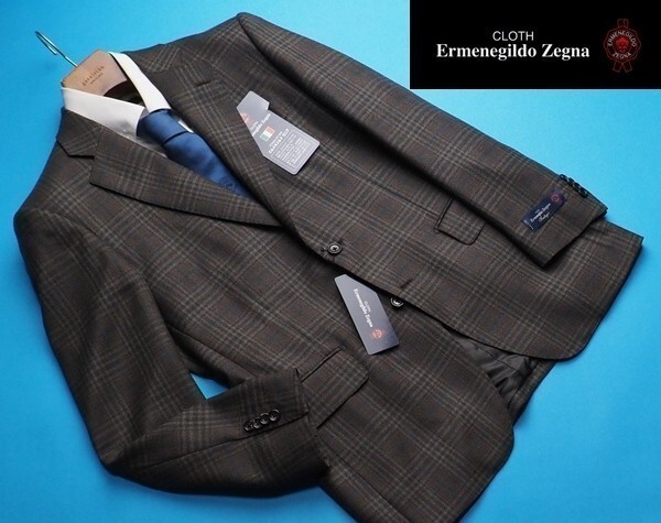 - 新品12.9万円 大手百貨店扱い 秋冬『Ermenegildo Zegna ゼニア Heritage 伊製生地』ウール100% チェック柄 ジャケットAB8茶(E) 3053050