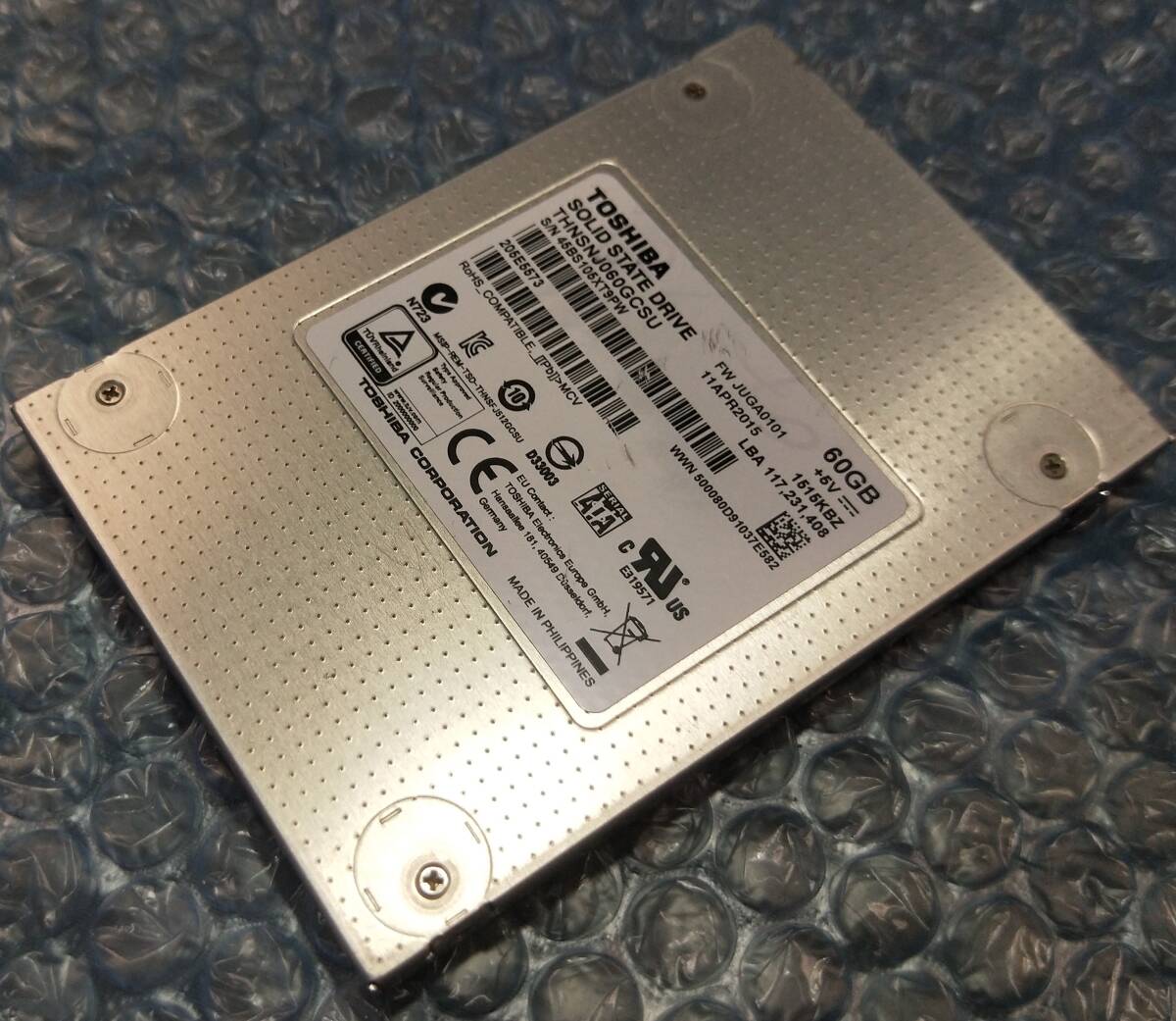 - 【中古パーツ】2.5 SATA SSD 1台 正常 TOSHIBA THNSNJ060GCSU 60GB 使用時間33473H■SSD3088