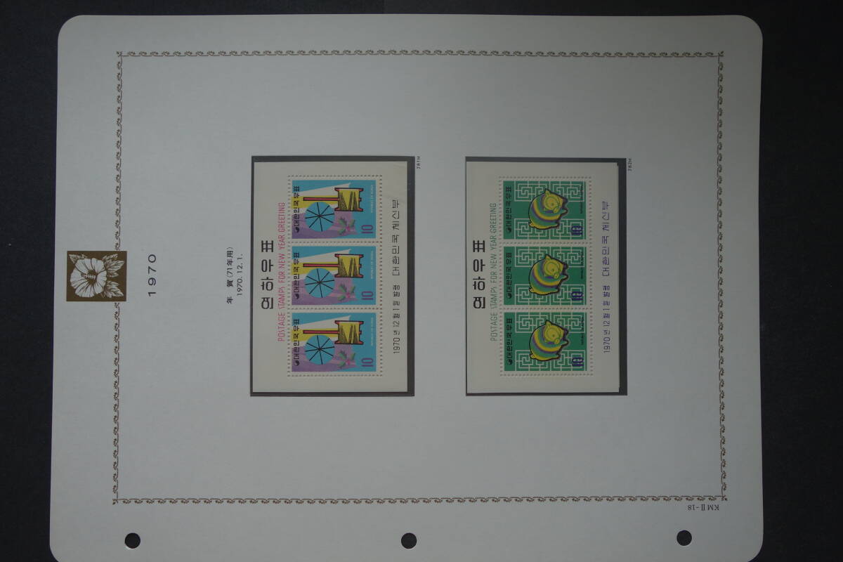 - 外国切手: 韓国切手「ヒンジレスリーフに整理済切手・年賀(71年用)」小型シート 2種完 未使用