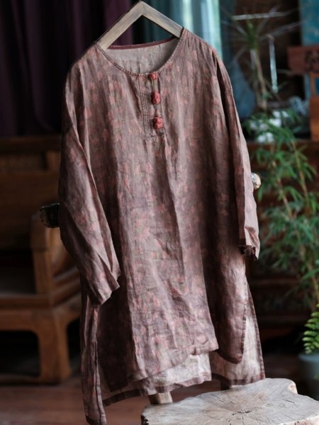 > lgn 2407 2096-1 ロングチュニック 花柄 アンティーク風 洋服ミックス ロマンファッション 苧麻100% リネン 日焼け紫外線防止