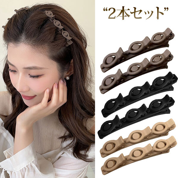 - ヘアピン ヘアクリップ ツイスト 2個セット ねじりアレンジ ベルベット調 前髪 アレンジ 編み込み風 ヘアアクセサリー バレッタ 2個セット