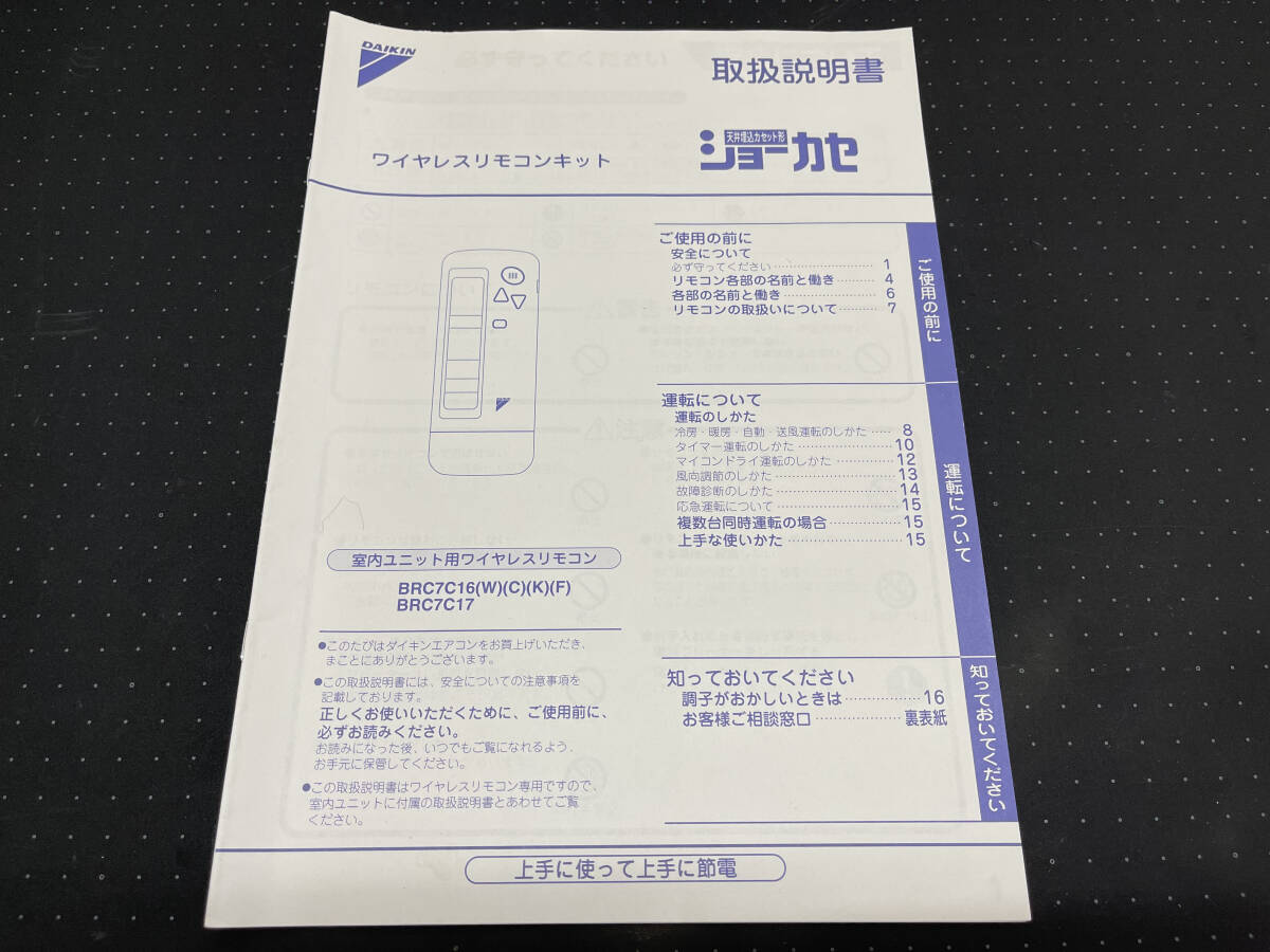 - エアコン ダイキン ルームエアコン 取扱説明書 ワイヤレスリモコンキット BRC7C16 天井埋込カセット形