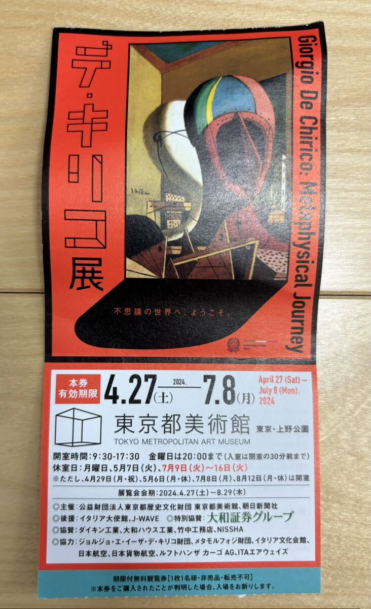 - デ・キリコ展 チケット 半券 送料無料 東京都美術館 使用済み