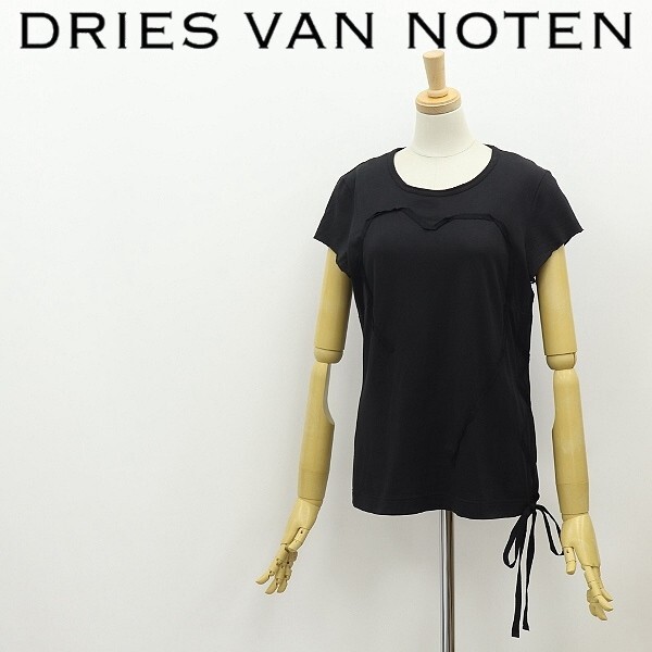 > 美品◆DRIES VAN NOTEN ドリス ヴァン ノッテン ハートデザイン サイドリボン コットン 半袖 トップス カットソー 黒 ブラック S
