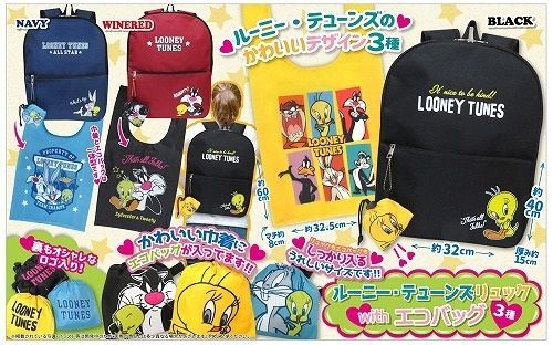 - ルーニーテューンズ リュック シルベスター トゥイーティー エコバッグ付き ワインレッド