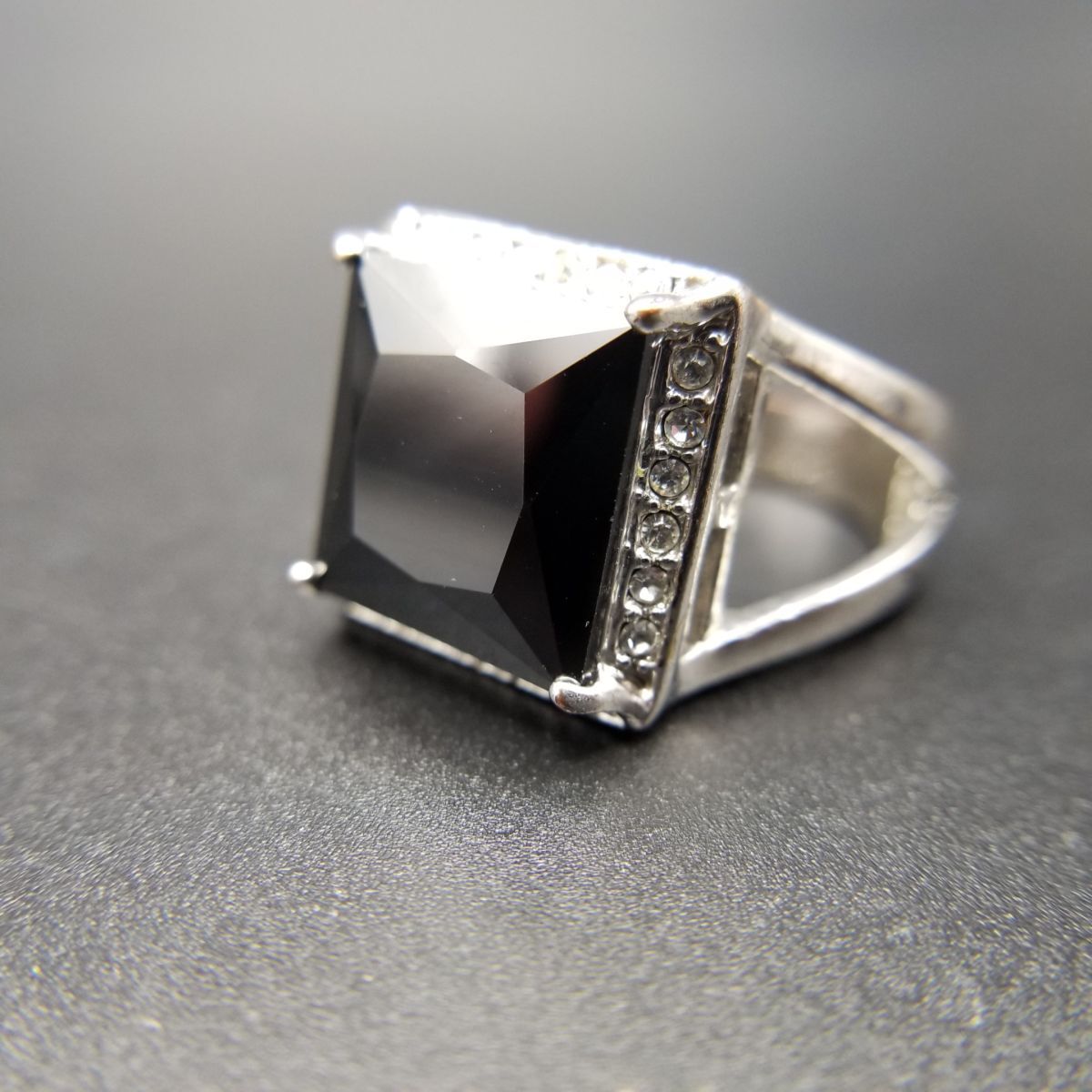 > ブラックストーン スクエアカット 大ぶり ヴィンテージ リング 指輪 シルバートーン ファッションジュエリー 大きめサイズ Y17-B