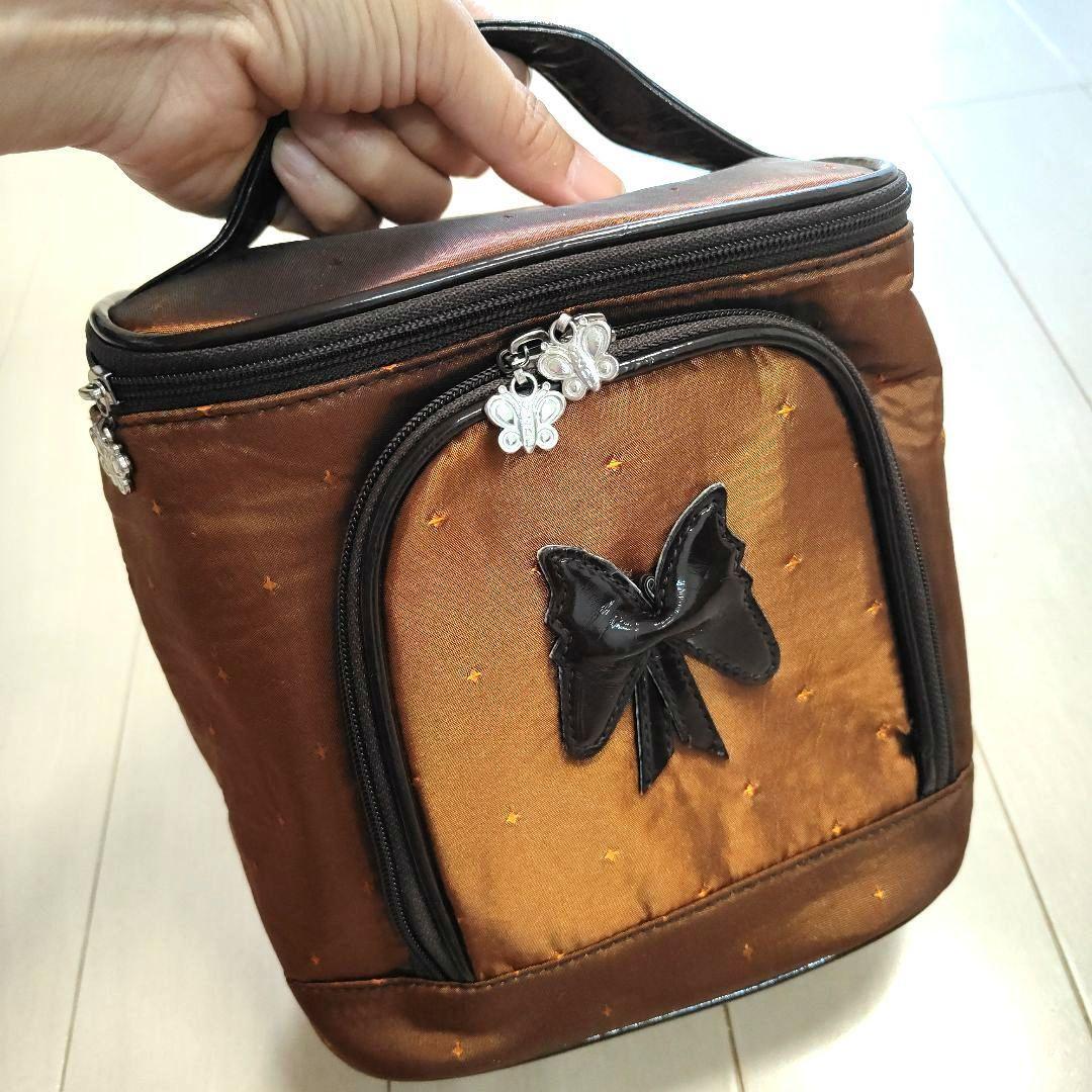 - 折り畳める コスメポーチ アクセスが2か所あり ミニミラー内蔵 ブラシ挿し付き