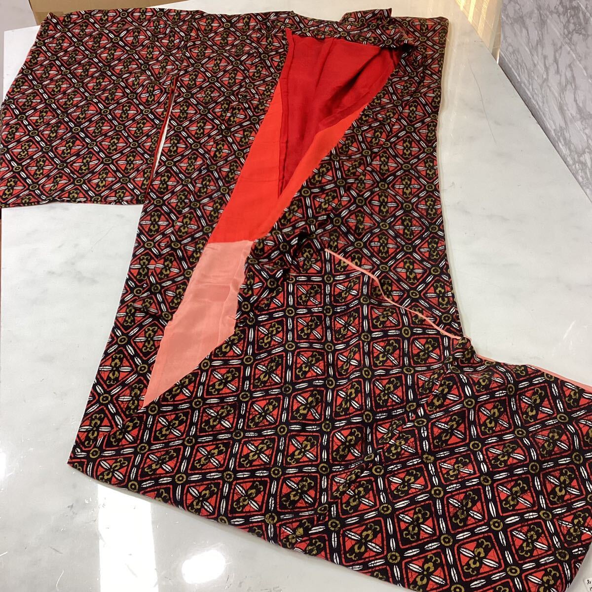 - 女性用 着物 レッド系 レトロ レディース 和装 派手 可愛い 総柄 O25