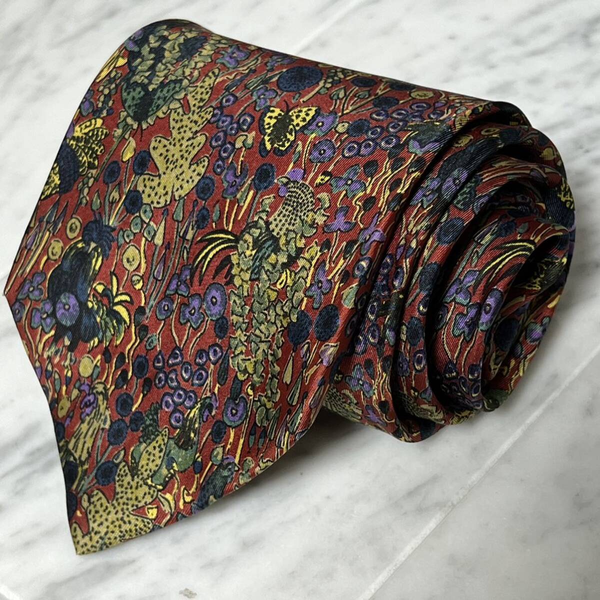 - 999円~ ピエールバルマン ネクタイ レッド系 昆虫 蝶々 ボタニカル柄 植物 (R4)