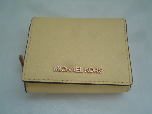 - X4457-185♪【60】MICHEL KORS マイケルコース 三つ折り レディース 財布 ジップ付き イエロー