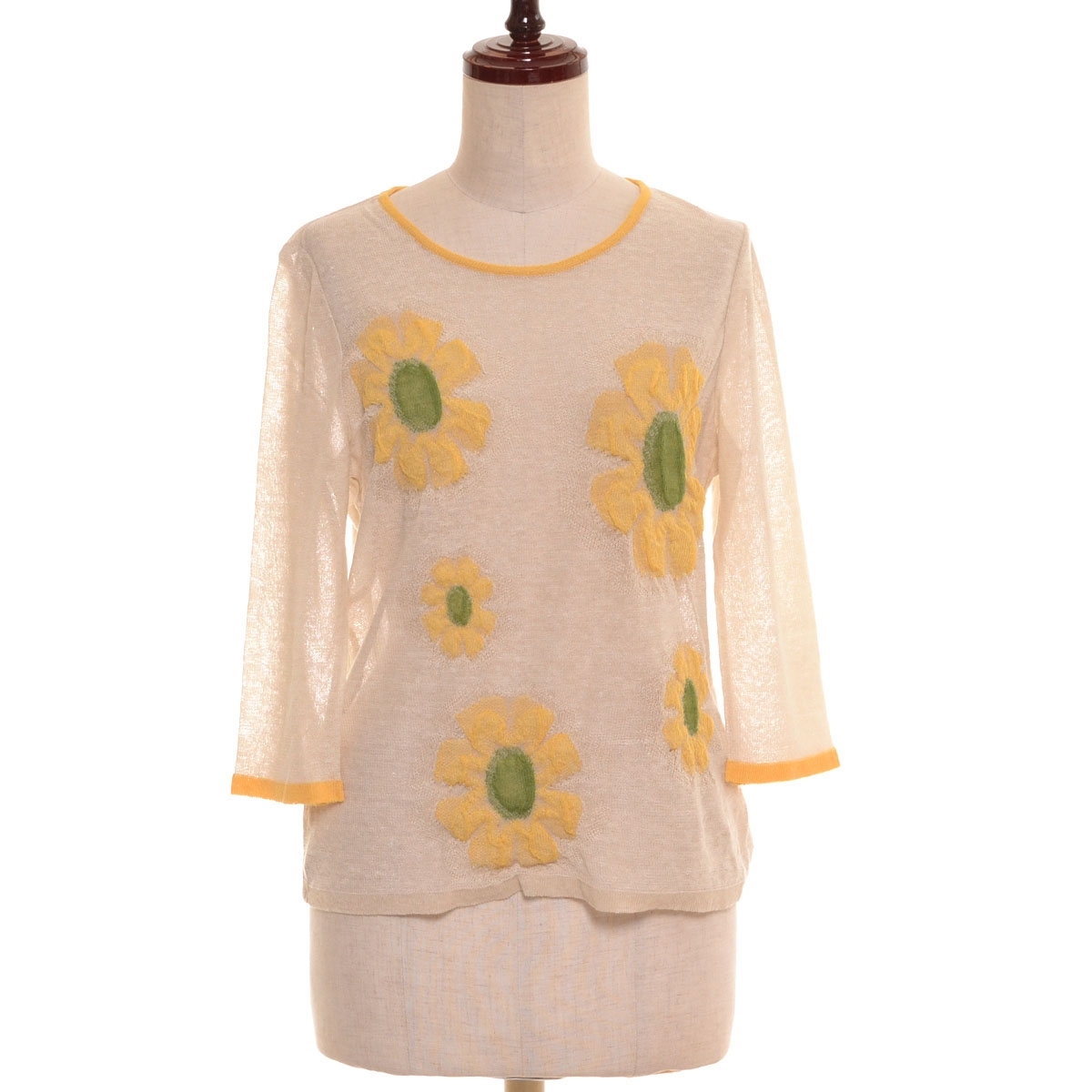- □506034 COSA-NOSTRA コーザノスタラ ◯セーター 花柄リネンコットンニットPO サイズ40 レディース ベージュ