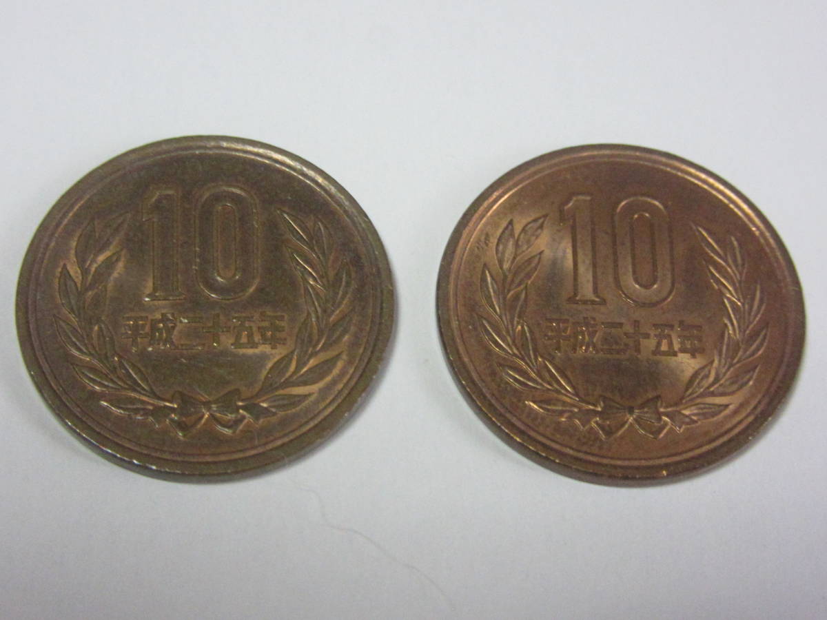 - ★平成発行数小 平成25年 10円青銅貨 2枚 流通品★