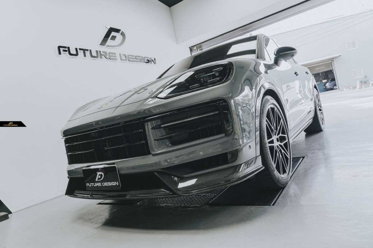 > 【FUTURE DESIGN】PORSCHE ポルシェ Cayenne カイエン Coupe クーペ E3 II 後期用 リップスポイラー 本物DryCarbon ドライカーボン