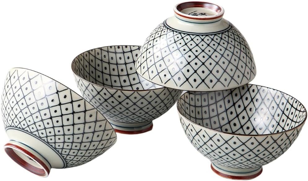 - 美濃焼! ☆格子ご飯茶碗4客揃☆ V4075-6 新品 飯碗 ご飯茶碗 丼 どんぶり 碗 盛鉢 盛皿 鉢 プレート ギフト