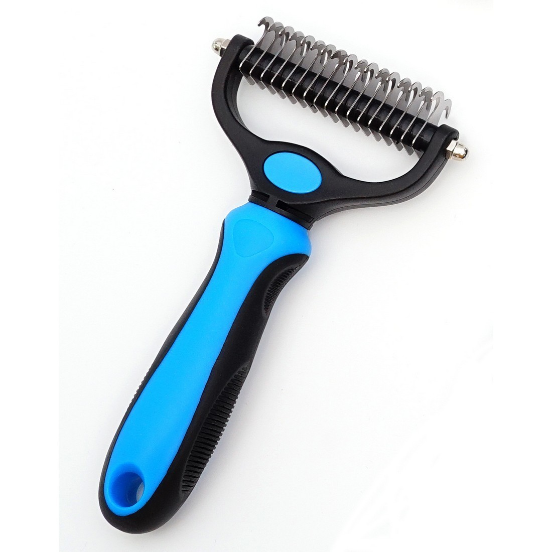 - ペットコーム ペット用品 両面刃 Lサイズ ムダ毛取りコーム ステンレス グルーミングブラシ 抜け毛 毛玉取り 犬 猫 ブルー
