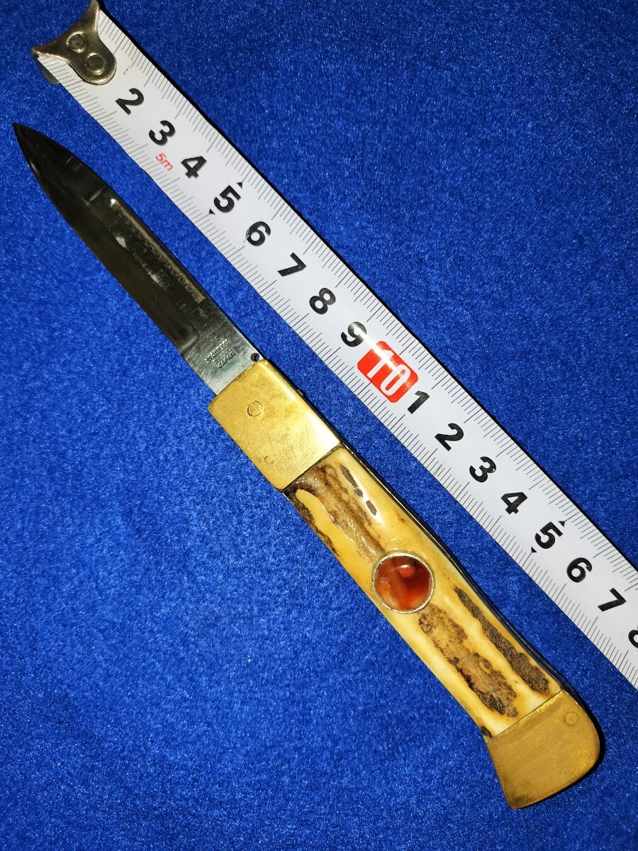 - ゾーリンゲン風 鹿の角 宝石トパーズ入り 折りたたみナイフ 片刃 合法品 時代物