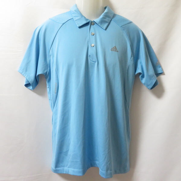 > 古着 メンズL adidas/アディダス ゴルフ ポロシャツ 半袖 ポリエステル ライトブルー/シルバー/ブルー P16637