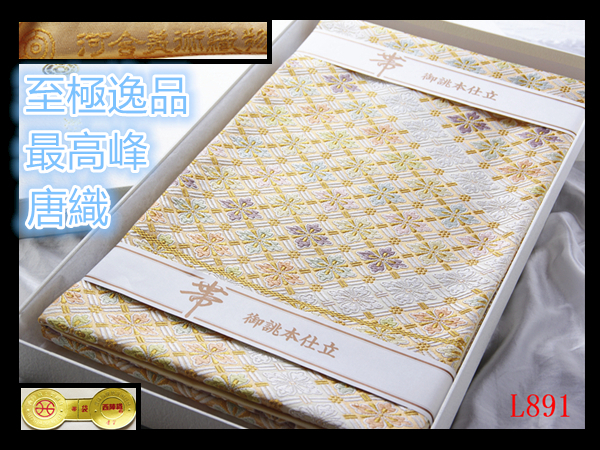 > L891厳選至極 河合美術織物 西陣名門老舗ブランド 花菱文様極上逸品ベージュ地 六通高級美術袋帯 新品 ◇検◇簪名古屋帯締め