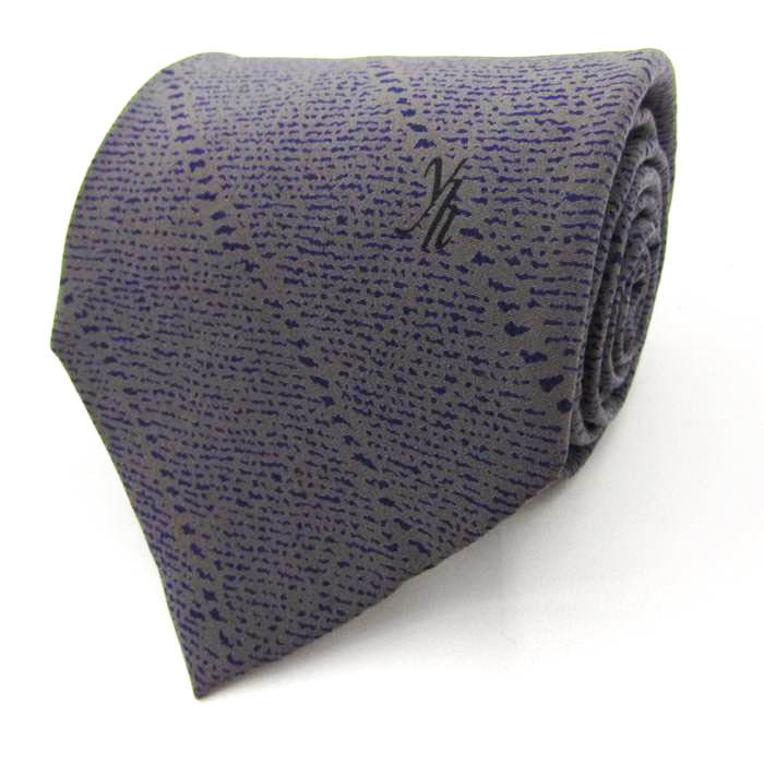 > ユキコハナイ ブランド ネクタイ ロゴ ストライプ柄 パネル柄 シルク PO メンズ グレー YUKIKO HANAI