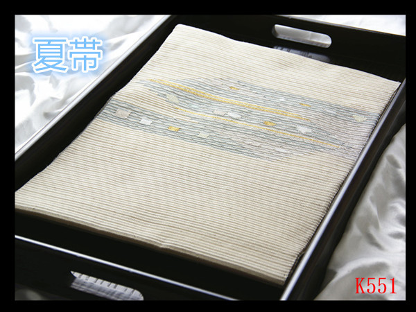 > K551厳選逸品 夏帯 絽 透かし 横段装飾紋 ベージュ色地 お洒落な 高級美術名古屋帯 ◇検◇簪着物袋帯帯締め